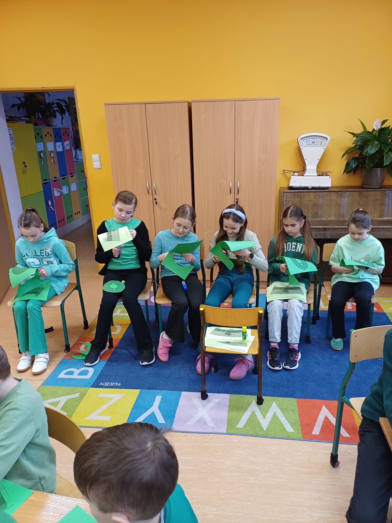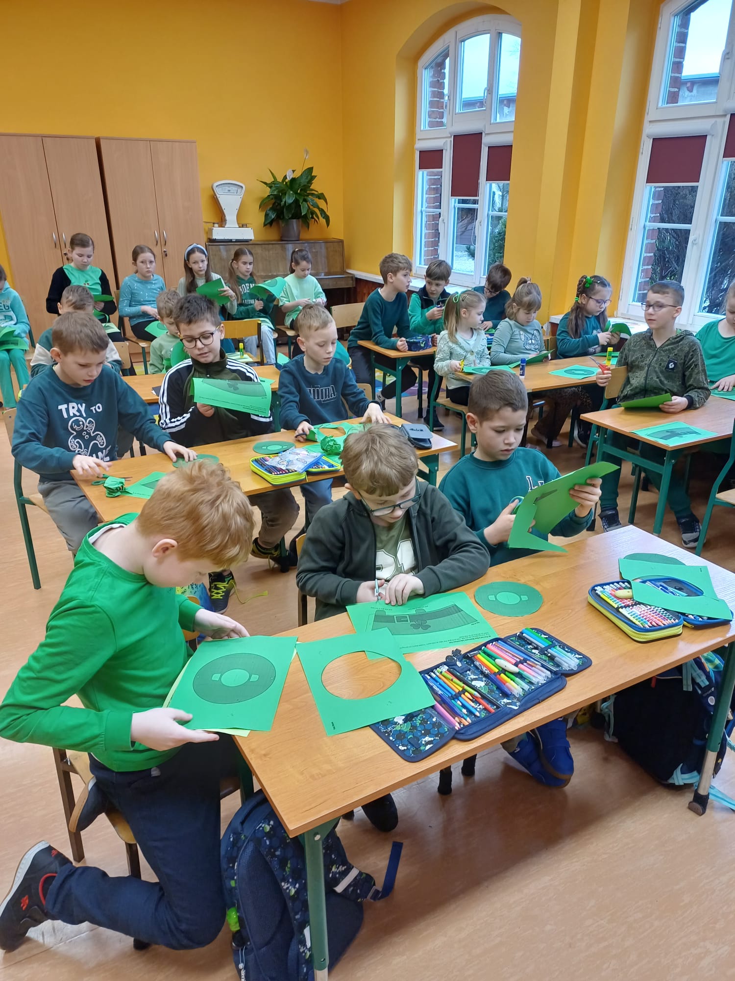 jest symbolem tego święta, więc przyszli ubrani na zielono. Dzieci z klas